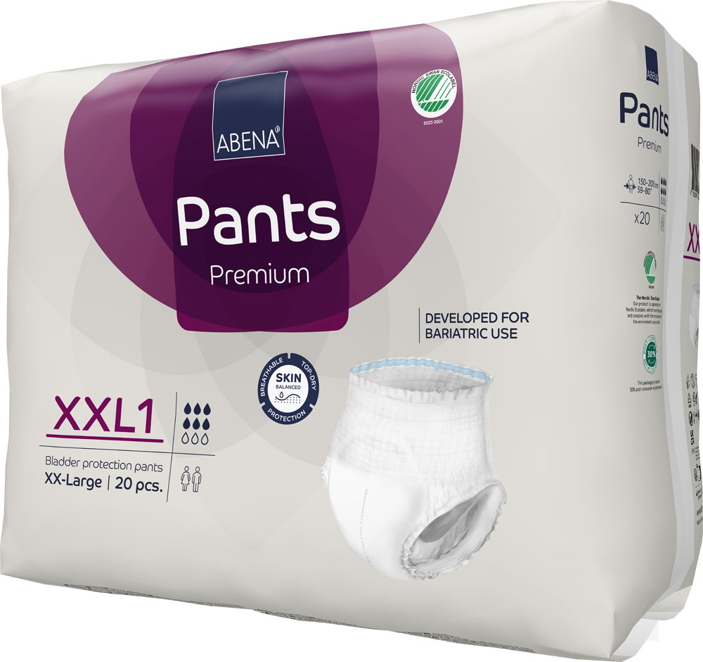 Die ABENA Pants XXL1 Premium sind atmungsaktiv und eine perfekte Lösung für Frauen und Männer mit leichter bis mittelschwerer Blasenschwäche und Inkontinenz .