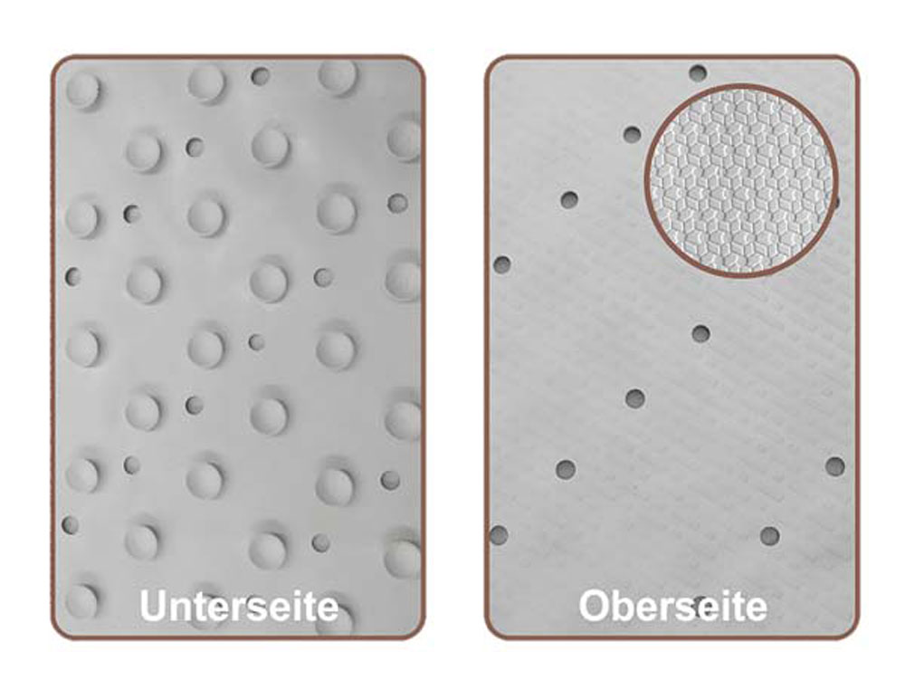 - Rutschhemmende Oberfläche: Die Matte verfügt über eine spezielle rutschhemmende Oberfläche, die Ihnen sicheren Halt gibt, selbst wenn die Wanne nass ist.