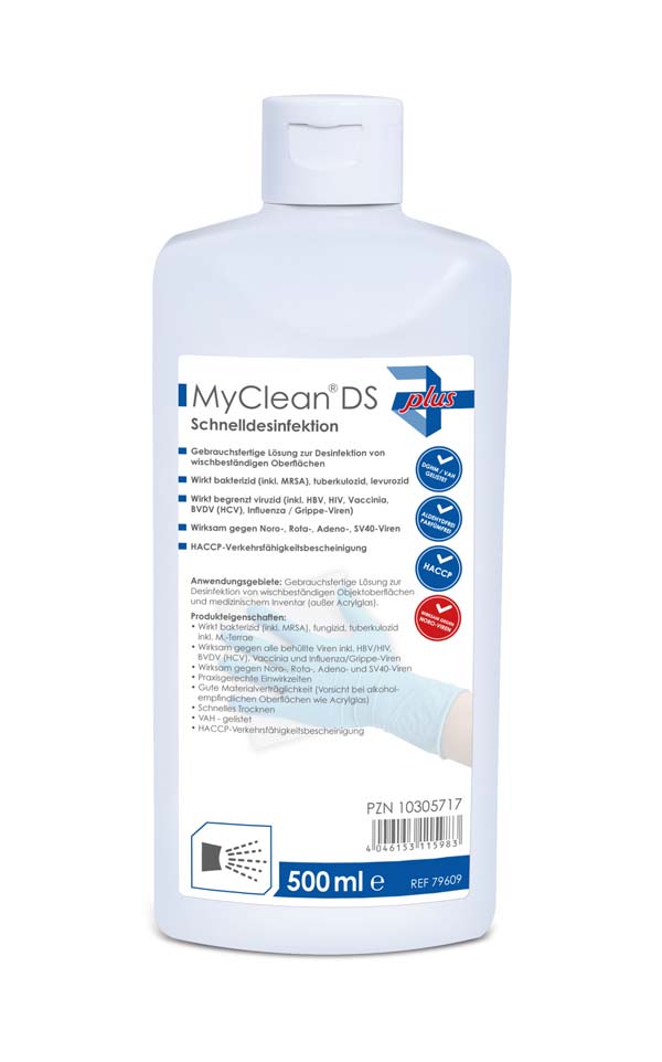 - Beschreibung MyClean® DS Flächendesinfektion Gebrauchsfertiges Konzentrat für Flächen, geeignet zur Bekämpfung von Bakterien & Viren… Mehr