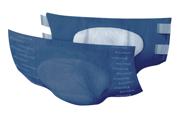 Die NorthShore Megamax Windeln besitzt eine Außenfolie, welche nicht atmungsaktiv ist. Für viele Menschen stellt dies noch einen psychischen Gewinn an Sicherheit dar. Geschlossen wird die Windel mit jeweils 2 großen Klebeverschlüssen pro Seite. Diese werden im vorderen Teil auf eine extra verstärkte Zone geklebt. Dies verhindert ein Einreißen der Folie auf Grund des höheren Gewichtes und der somit höheren Belastung im nassen Zustand der Megamax Windel. Die Außenfolie ist bei dieser Version im neutralen Weiß gehalten. Sie ist besonders strapazierfähig und verhindert effizient den Austritt von Gerüchen.