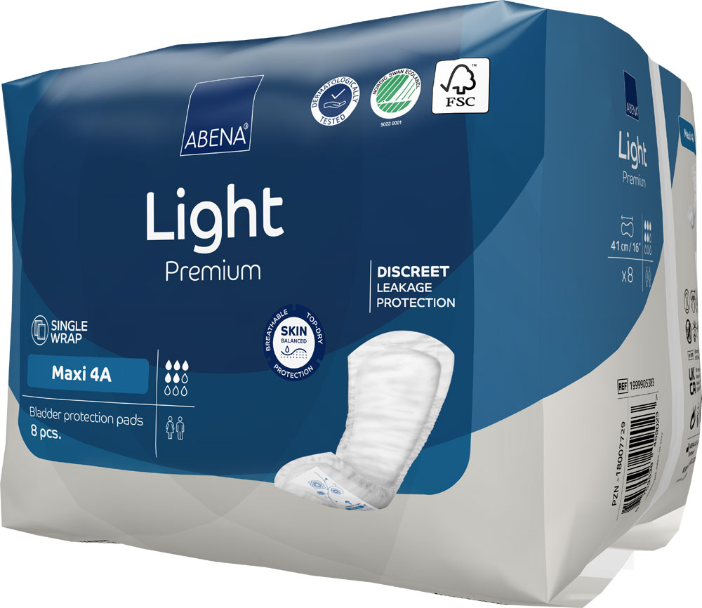 - Beschreibung ABENA Light MAXI 4A - Inkontinenz Einlagen für Frauen bei mittlerer Blasenschwäche Die ABENA Light Produkte sind speziell a… Mehr