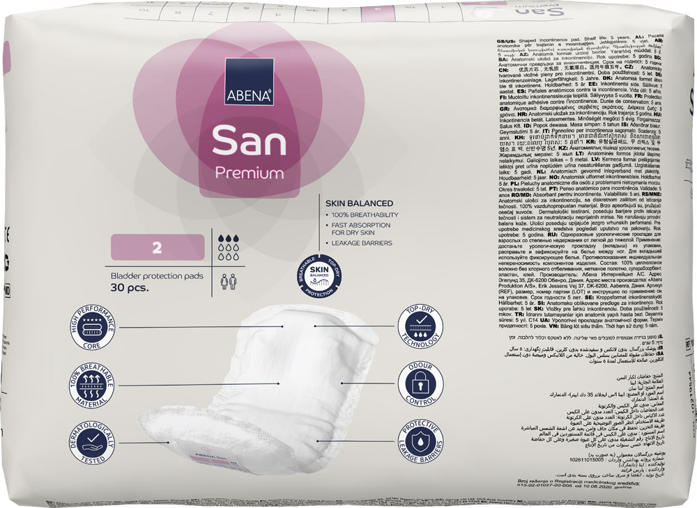 ABENA SAN PREMIUM 2 - anatomisch geformte luftdurchlässige Inkontinenz-Einlagen