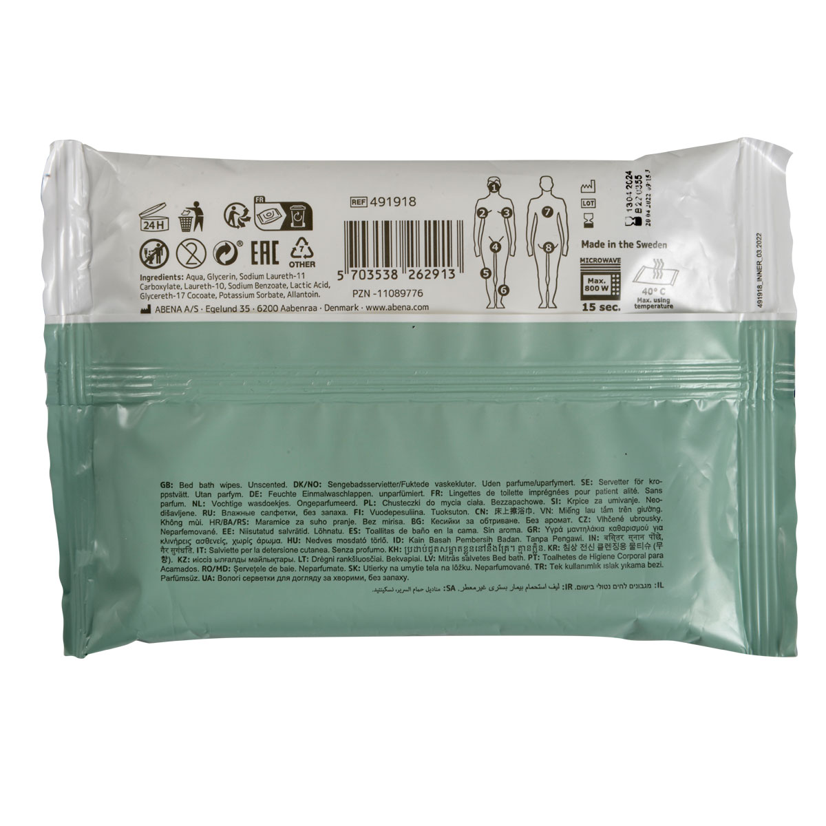 Verwendet werden die ABENA feuchten Waschlappen zur kompletten Körperpflege. Bitte verwenden Sie für jeden Körperbereich einen neuen Lappen. Die ABENA Waschlappen sind feucht und mit einer Seifenlotion mit niedrigen pH-Wert (zwischen 4,3 und 4,5) versehen. Auf Parfüm wird verzichtet. Um die Reinigung so angenehm wie möglich zu gestalten, können die Lappen in der Mikrowelle (max 800W) oder auf der Heizung sowie im Wasserbad, erwärmt werden. Um Verbrühungen vorzubeugen sollten Sie die Temperatur kontrollieren. Sie sollte unter 40°C liegen. Die Tücher sind auch für empfindliche Haut und den Intimbereich geeignet.