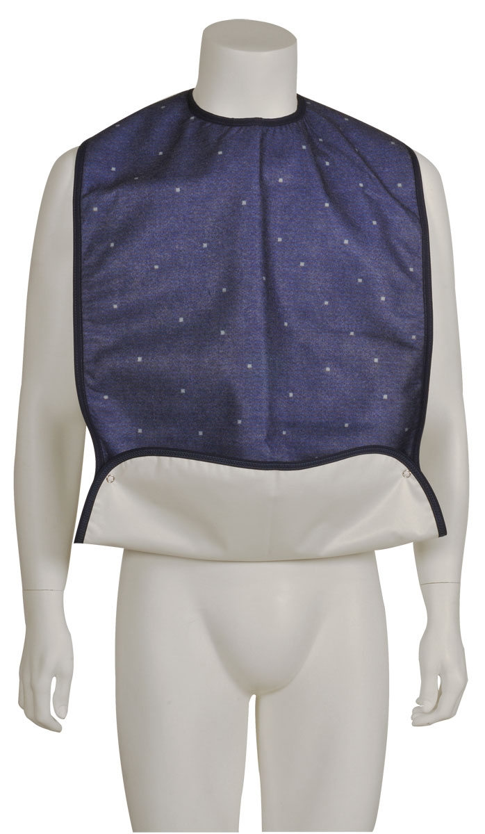 Der waschbare Speiselatz für Erwachsene ist durch einen Druckknopfverschluss in drei Größen verstellbar. Das Unterteil der Essschürze lässt sich durch 2 Druckknöpfe zu einem Auffangbeutel formen. Die Oberfläche des Ess-Lätzchen ist saugfähig und kann kleine Flüssigkeitsmengen aufnehmen.