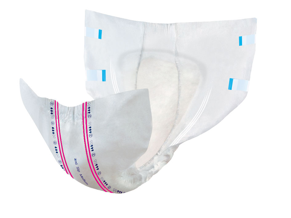 Die Amd Slip MAXI PLUS Windel ist besonders geeignet für Menschen mit schwerer bis schwerster Inkontinenz und die entweder bettlägerig oder hyperaktiv sind. Der Inkontinenzslip ist atmungsaktiv und lässt somit Luft an die Haut. Zudem sorgt diese textilähnliche Oberfläche für mehr Diskretion durch ihre Geräuscharmut. Eine perfekte Passform wird durch elastische Bündchen im Bauch- und Rückenbereich gewährleistet. Die vier wieder verschließbaren Klettverschlüsse sorgen für eine hohe Anpassungsfähigkeit und optimalen Sitz. Die Flüssigkeit wird schnell in den mit Superabsorber angereicherten Kern geleitet. Dort wird sie zu Gel umgewandelt und kann somit nicht mehr austreten. Der integrierte Auslaufschutz sorgt für extra Sicherheit. Ein eingearbeiteter Nässeindikator zeigt jeder Zeit den „Füllstand“ der Windel an.