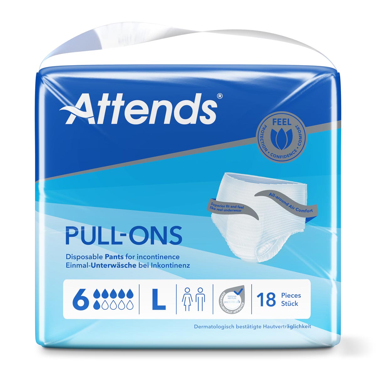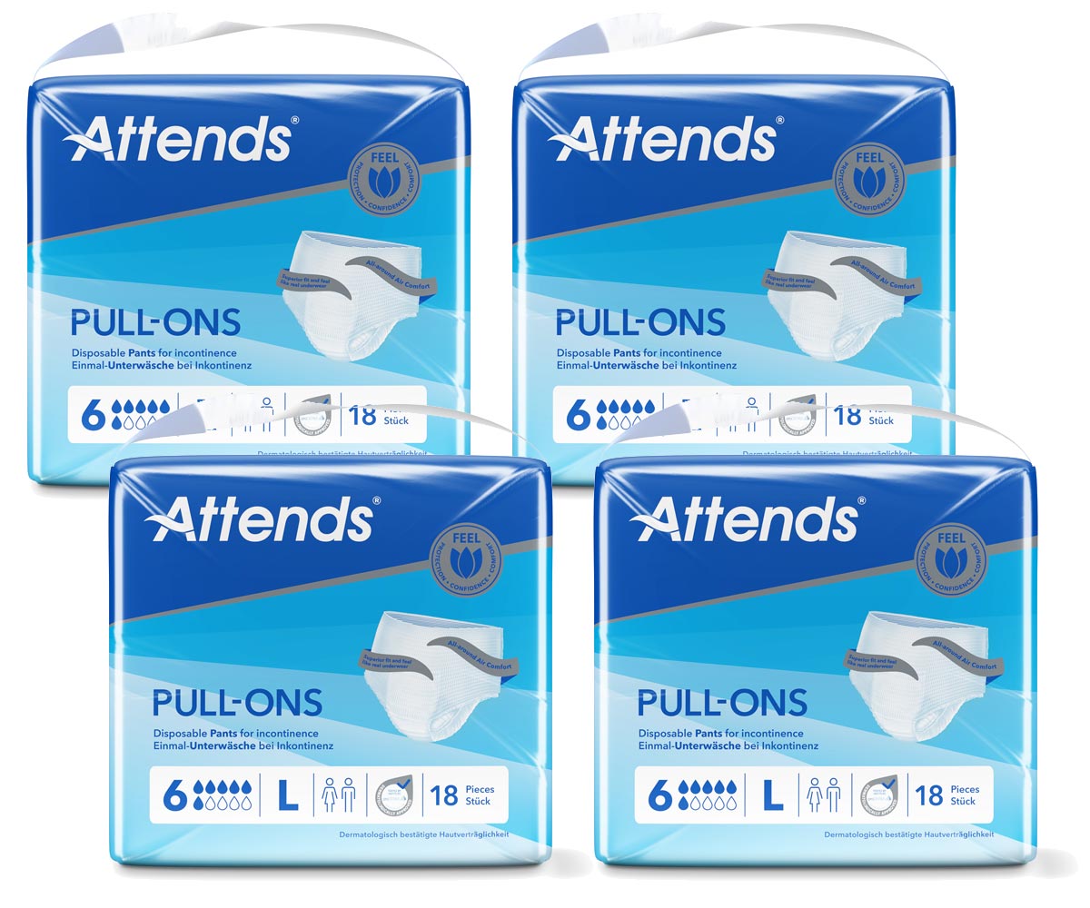 Attends Pull-Ons 6 Large (L) | 100-140 cm | 2.264 ml | 4x18 (72) Stück |