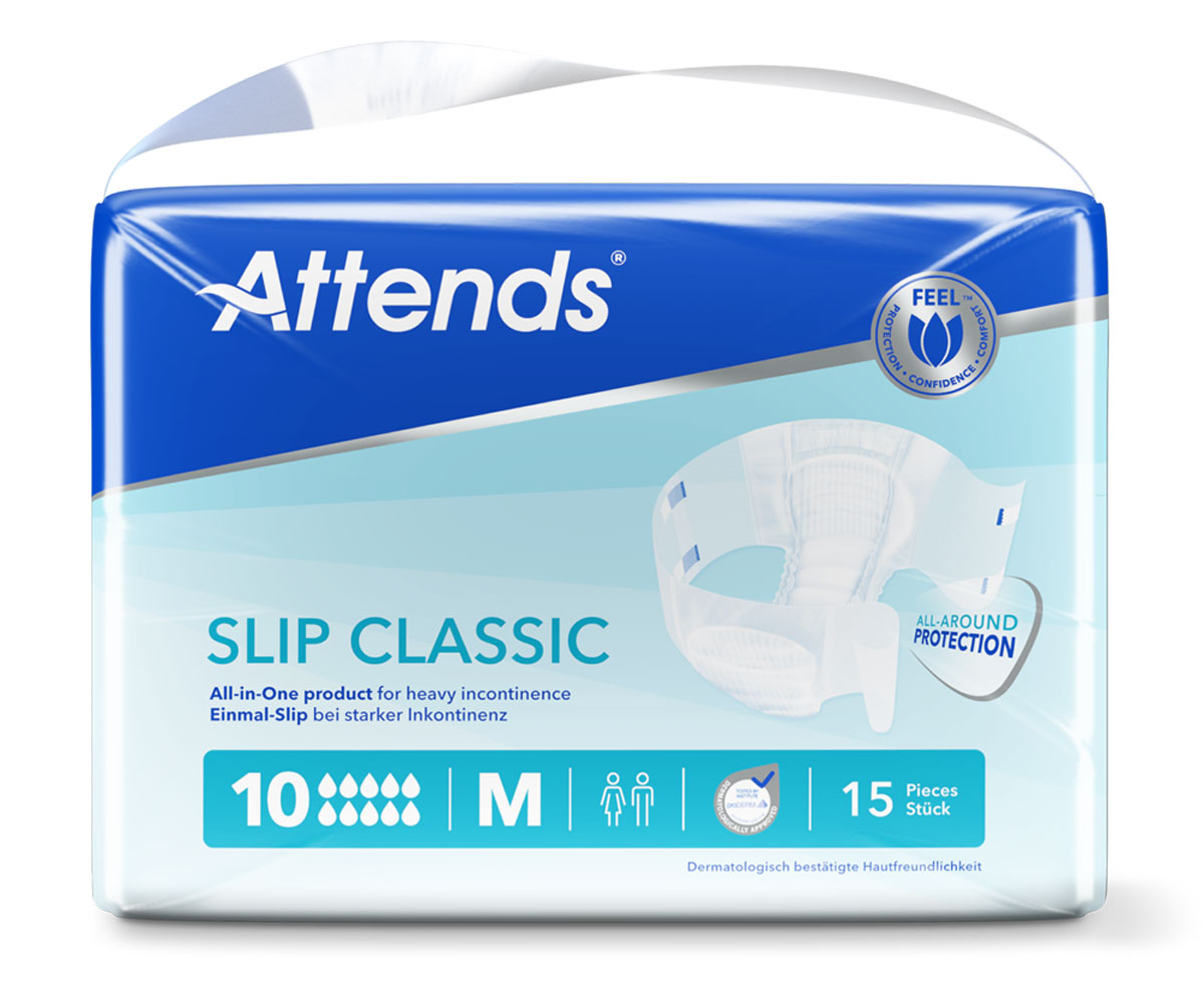 - Beschreibung Attends Inkontinenzslip CLASSIC 10 M - Gr. Medium (4x15 Stück) Die Attends Slip CLASSIC 10 M Inkontinenzwindeln Größe 2 las… Mehr