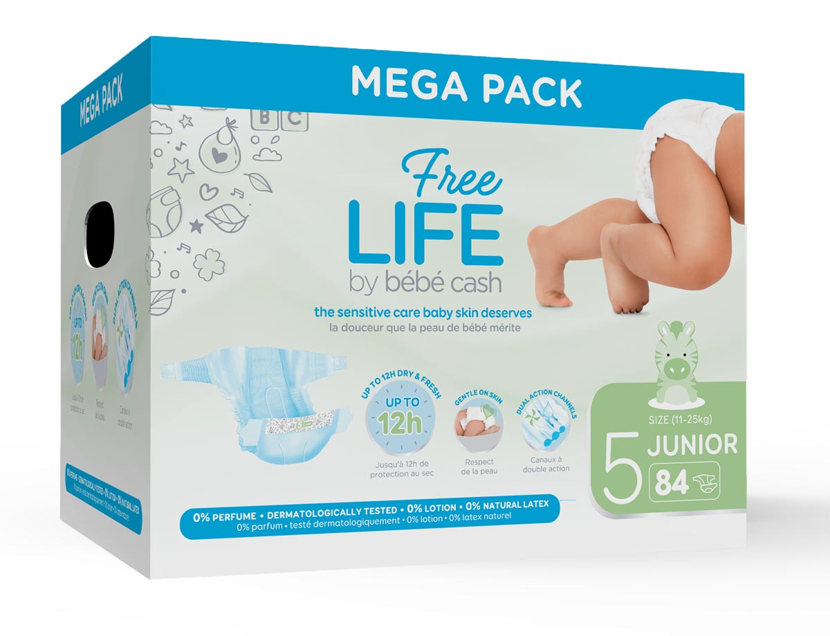 Produktinformationen "BEBE CASH Freelife 5 - Kinderwindeln Gr. Junior 11-25 kg - 84 St. Megapack"