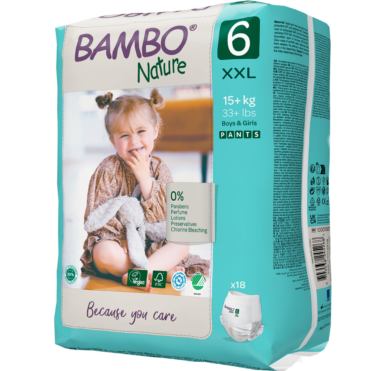 - Beschreibung Bambo NATURE - Training Pants XX-Large (Gr. 6) Windelpants für aktive Kleinkinder von 15+ kg. Diese Atmungsaktiven Einweg-… Mehr