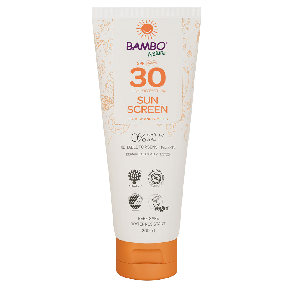 Die Sonne lacht, es ist herrlich warm und nichts kann Ihr Kind vom Spielen am Strand abhalten. Wie wichtig ist da der entsprechende Sonnenschutz. Neben T-Shirt und Sonnenhut müssen auch die unbedeckten Hautpartien vor zu viel UVA & UVB Strahlung geschützt sein. Was liegt näher als die Verwendung einer natürlichen Sonnenschutzcreme mit hohem Lichtschutzfaktor. Gerade für Ihr Liebstes ist nur das Beste gut genug. Deshalb sollte es auch die Sonnencreme vom Bambo Nature sein. Denn sie ist frei von Duftstoffen, Farbstoffen und allergieauslösenden Substanzen. Der Bambo Nature Sonnenschutz wurde hochgradig zertifiziert und dermatologisch getestet und ist somit bestens für zarte und empfindliche Kinderhaut geeignet. Aber natürlich auch für den Rest der Familie. Sie lässt sich leicht auftragen, verleiht der Haut einen hohen Schutz und macht sie seidig weich und ist sogar Wasserfest. Die Bambo Nature Sonnenschutzcreme ist vegan und korallenfreundlich. So gut geschützt können sie unbeschwert die besonderen Momente in der herrlichen Sommersonne genießen.