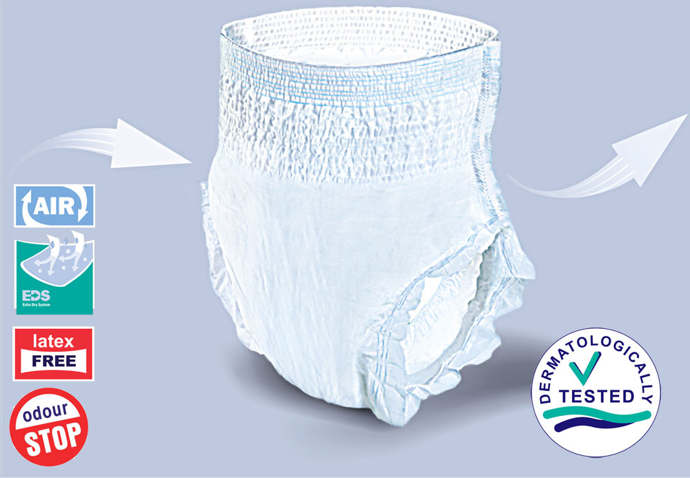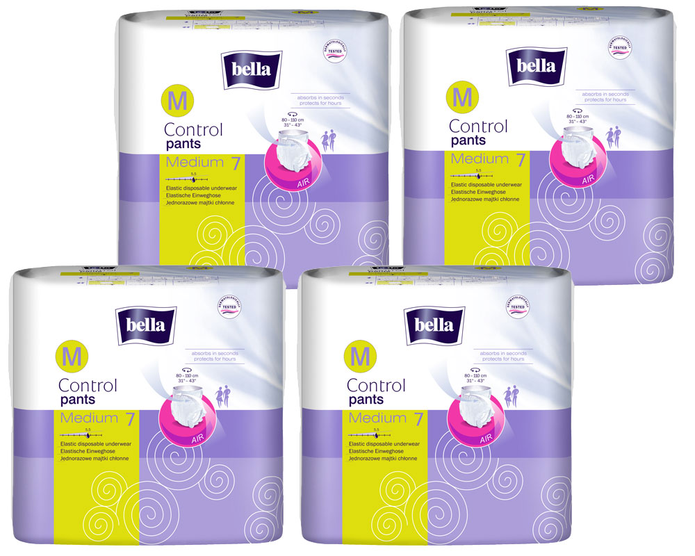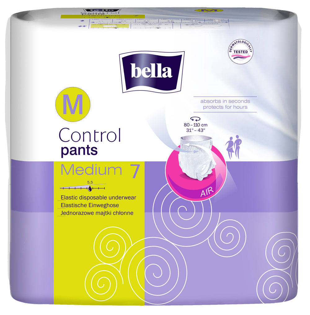 Bella Control Pants sind atmungsaktive und elastische Inkontinenzslip für die leichte bis mittlere Blasenschwäche. Die Pants sind ideal an die Bedürfnisse aktiver Personen angepasst. Durch die extra elastischen Bündchen erlauben die Slips ein mehrmaliges An- und Ausziehen. Die spezielle EDS-Schicht sorgt für eine schnelle Flüssigkeitsverteilung im Inneren des Saugkerns und hält somit die Haut angenehm trocken. Der Slip gibt Ihnen Sicherheit in jeder Situation. Durch einen antibakteriellen Superabsorber wird die Flüssigkeit gebunden und neutralisiert den unangenehmen Geruch.