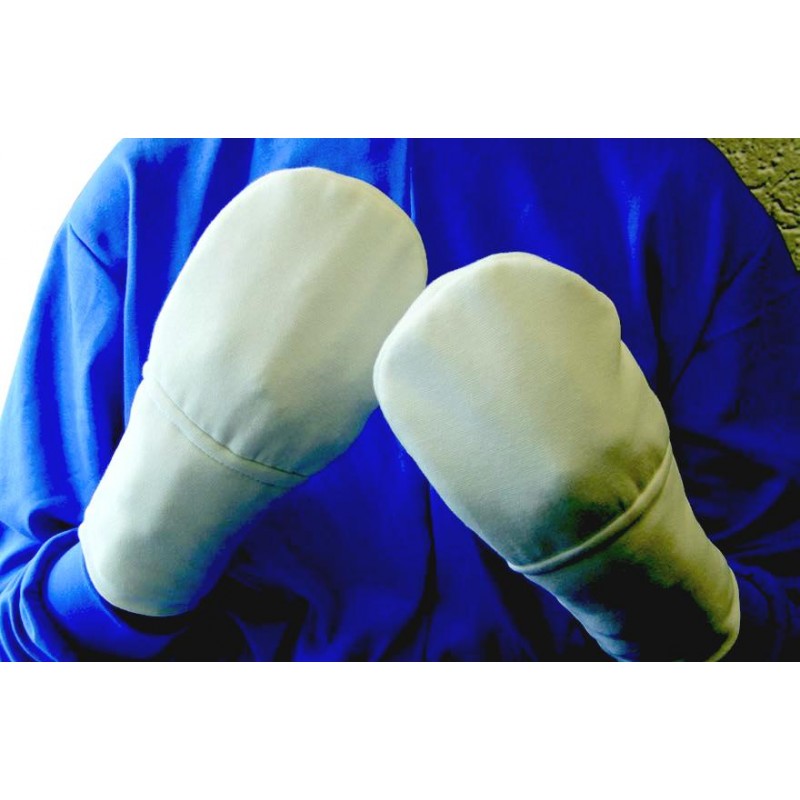 Dickes Baumwoll-Frottee, angenehm zu tragen, verhindert zuverlässig das Durchdringen der Fingernägel.