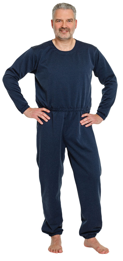 Patienten-Overall (Pflegeoverall) Jersey - mit T-Shirt-Armen - Rückenreißverschluss & Reißverschluß im Schritt