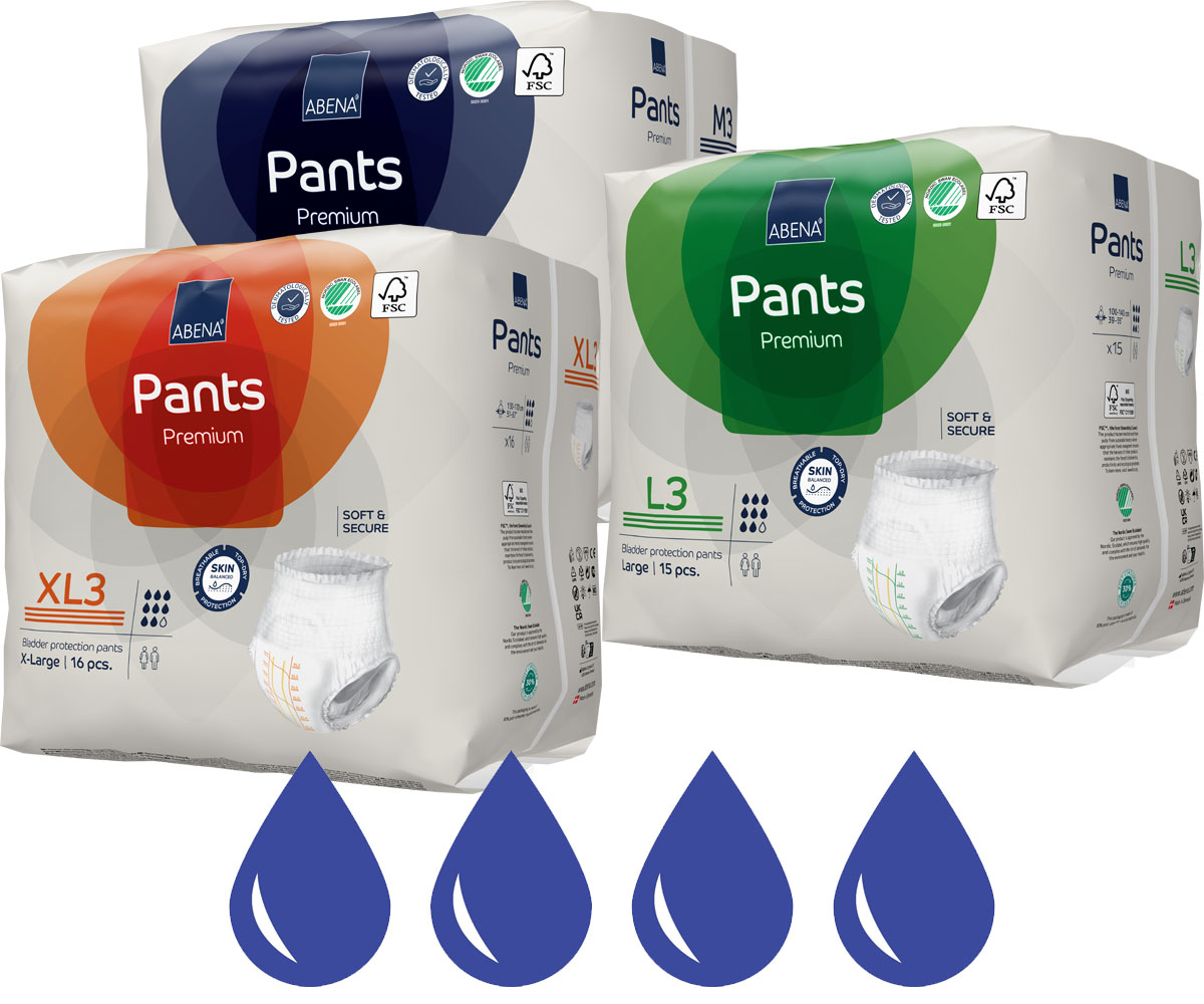 ABENA Pants Windelhosen können wie ganz gewöhnliche Unterwäsche getragen werden. Sie geben dem Anwender größere Freiheit, mehr Selbstwertgefühl und die Möglichkeit zur Selbsthilfe. Gleichzeitig können sich die Pflegekosten verringern, weil der Anwender mit diesem Produkt oft ganz ohne fremde Hilfe zurecht kommen kann. Die neue ABENA-Generation wurde vor allem entwickelt, um eine bessere Passform und größere Auslaufsicherheit zu gewährleisten.