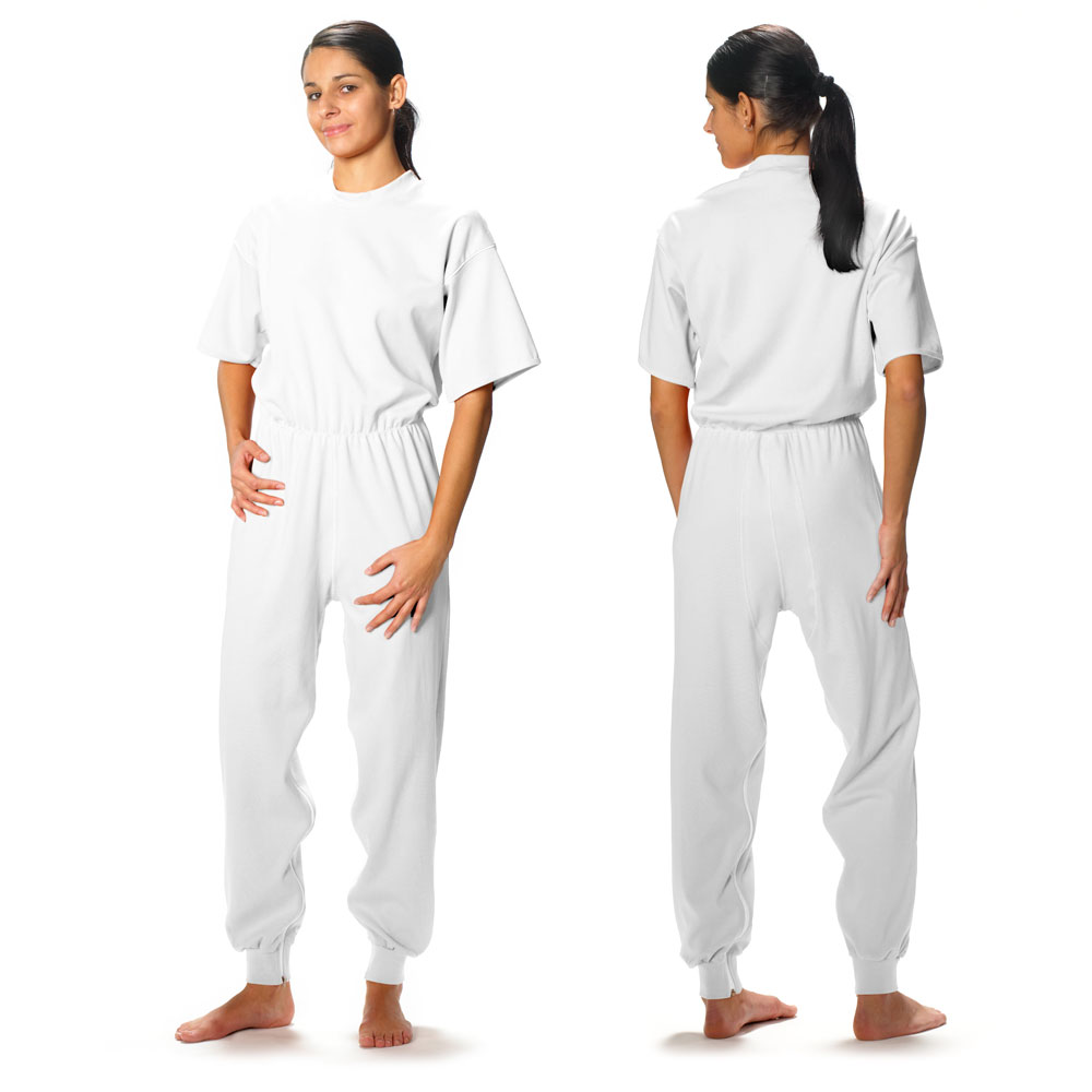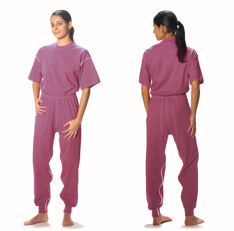 Der Pflegeoverall der Marke JANUS Tuttlingen eignet sich besonders für demente, inkontinente und geistig behinderten Personen. Durch die Auswahl der hochwertigen Materialien, in diesem Fall 100% Baumwolle, wird ein angenehmer Tragekomfort ermöglicht. Der Overall bietet eine hohe Bewegungsfreiheit und viel Komfort insbesondere beim Wechseln von Inkontinenzmaterial. Durch den teilbaren Reißverschluss im Schrittbereich wird ein einfaches wechseln der Vorlagen oder Windeln sowohl im Stehen als auch im Liegen ermöglicht, ein vollständiges entkleiden bedarf es daher nicht. Daher wird es dem Menschen auch erschwert sich selbst zwanghaft zu entkleiden oder an das Inkontinenzmaterial zu kommen. Beim Anziehen wird der Overall einfach über den Kopf gezogen und dann untern verschlossen. In der Gesäßpartie ist eine Verstärkung mit doppelter Materialstärke eingearbeitet.