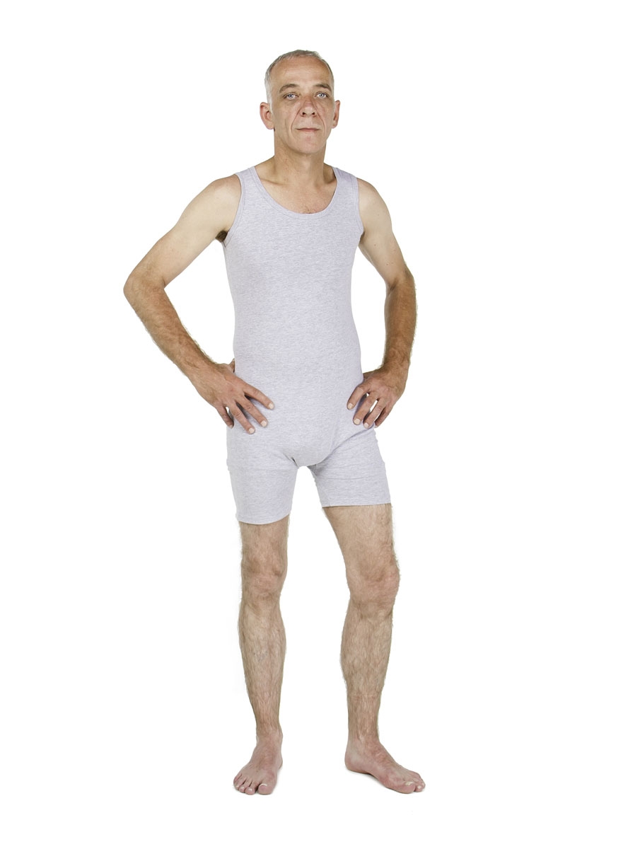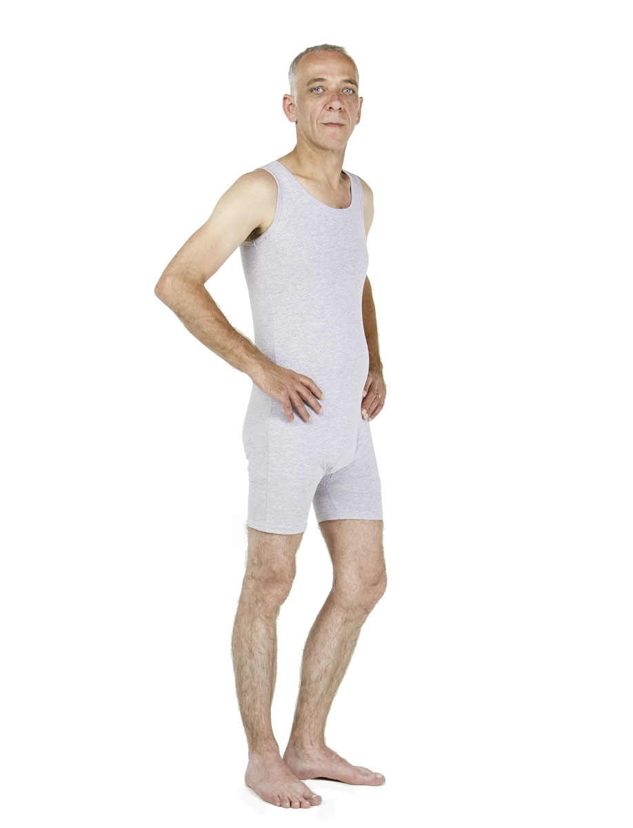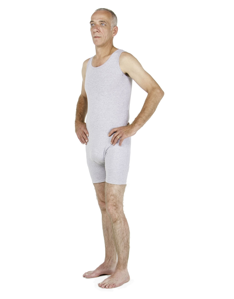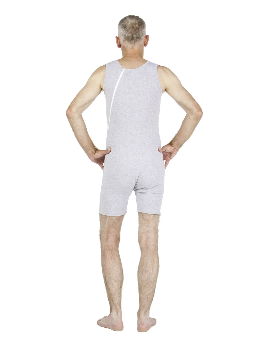 Pflegebody von Medicare mit Rückenreißverschluss ohne Arme mit halblangem Bein in der Farbe grau