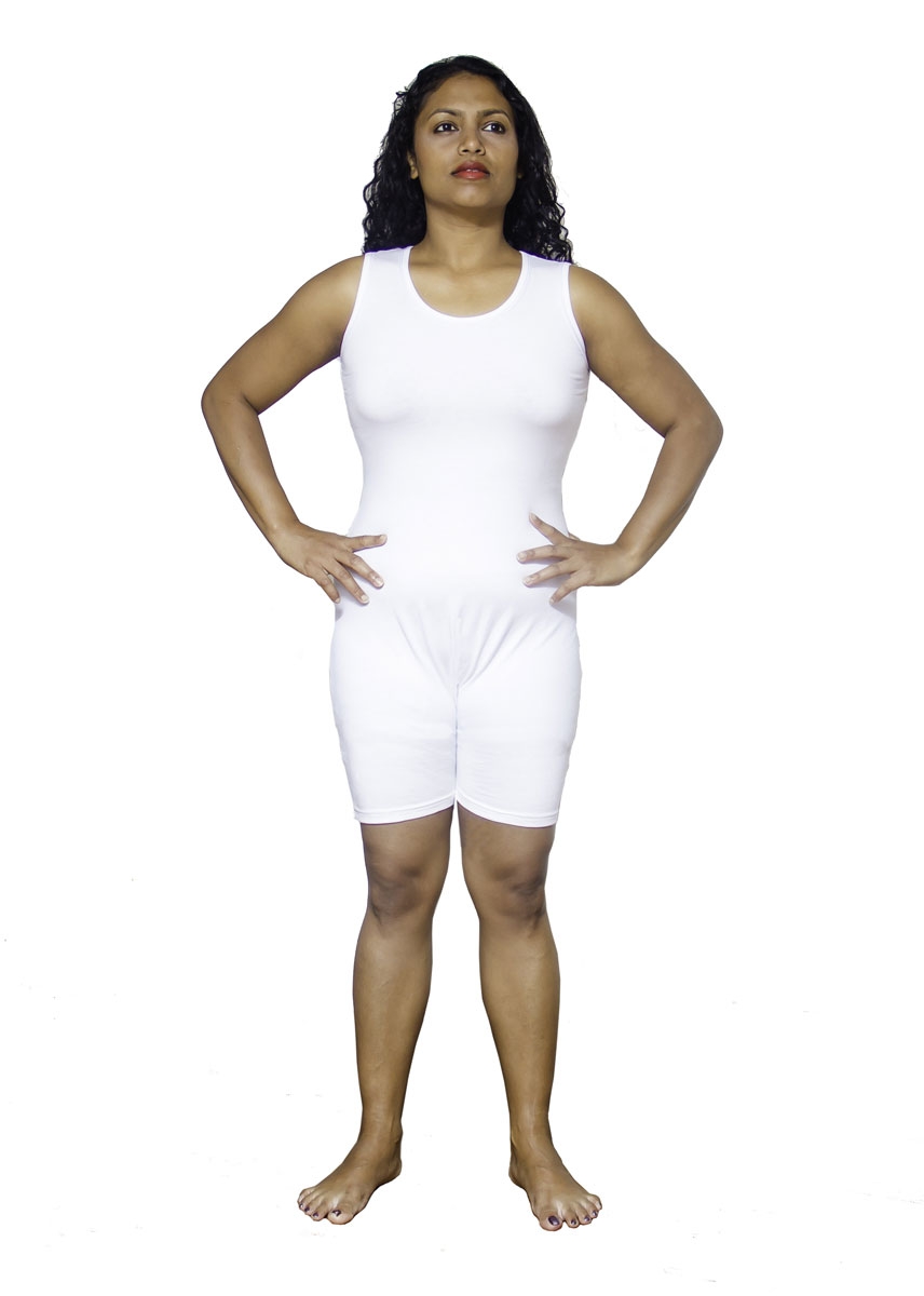 Pflegebody von Medicare mit Beinreißverschluss ohne Arme mit halblangen Beinen in der Farbe weiß