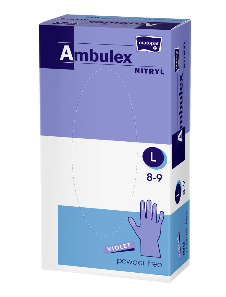Die Nitil-Handschuhe Ambulex des Herstellers Matopat (TZMO) werden für den medizinischen Bereich und im Bereich der Lebensmittelhygiene verwendet Diese sind besonders für ölige oder fettige Bereiche und Lebensmittel geeignet. Die praktische Spenderbox ermöglicht eine Einzelentnahme der Handschuhe. Die Handschuhe sind (gepudert) und zum Einmalgebrauch bestimmt. Die farbliche Gestaltung dient der besseren visuelle Wahrnehmung, um unterschiedliche Bereiche und Verwendung farblich voneinander abzugrenzen. Sie zeichnen sich durch hohe Reißfestigkeit aus und stellen eine sichere Schutzbarriere dar. Eignung für Personen mit Latexallergie.