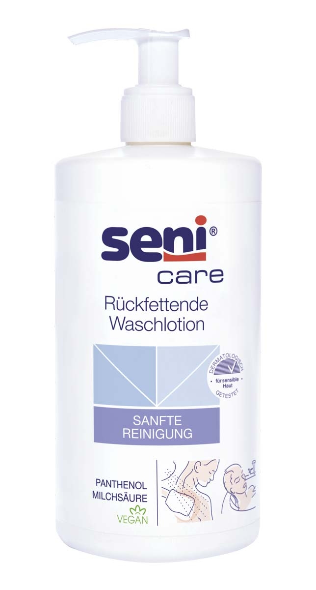 Seni Care bietet Ihnen Körperpflege Produkte zur Anwendung mit oder ohne Wasser zur sanften und gründlichen Reinigung aller Hautpartien. Die Haut wird geglättet und gepflegt. Seni Care bietet zur Reinigung Produkte wie die Rückfettende Waschlotion, Cremedusche mit 3% Urea oder ein spezielles feuchtigkeitsspendendes Shampoo an. Seife wird in diesen Artikeln nicht verwendet, um Hautirritationen zu mindern. Die Seni Care Waschcreme und der Seni Care Reinigungs- & Pflegeschaum sowie Feuchtpflegetücher eignen sich besonders für die normale Reinigung mit Wasser und Seife. Gekennzeichnet sind diese Pflegeartikel mit der Farbe: blau