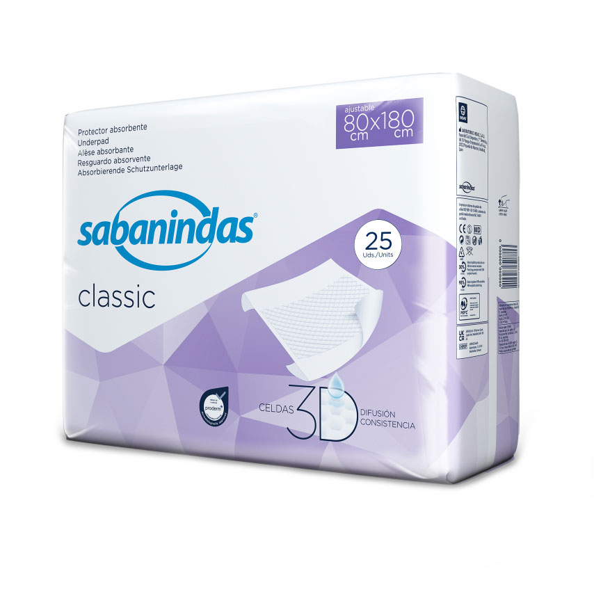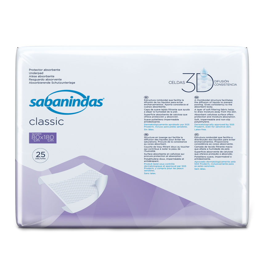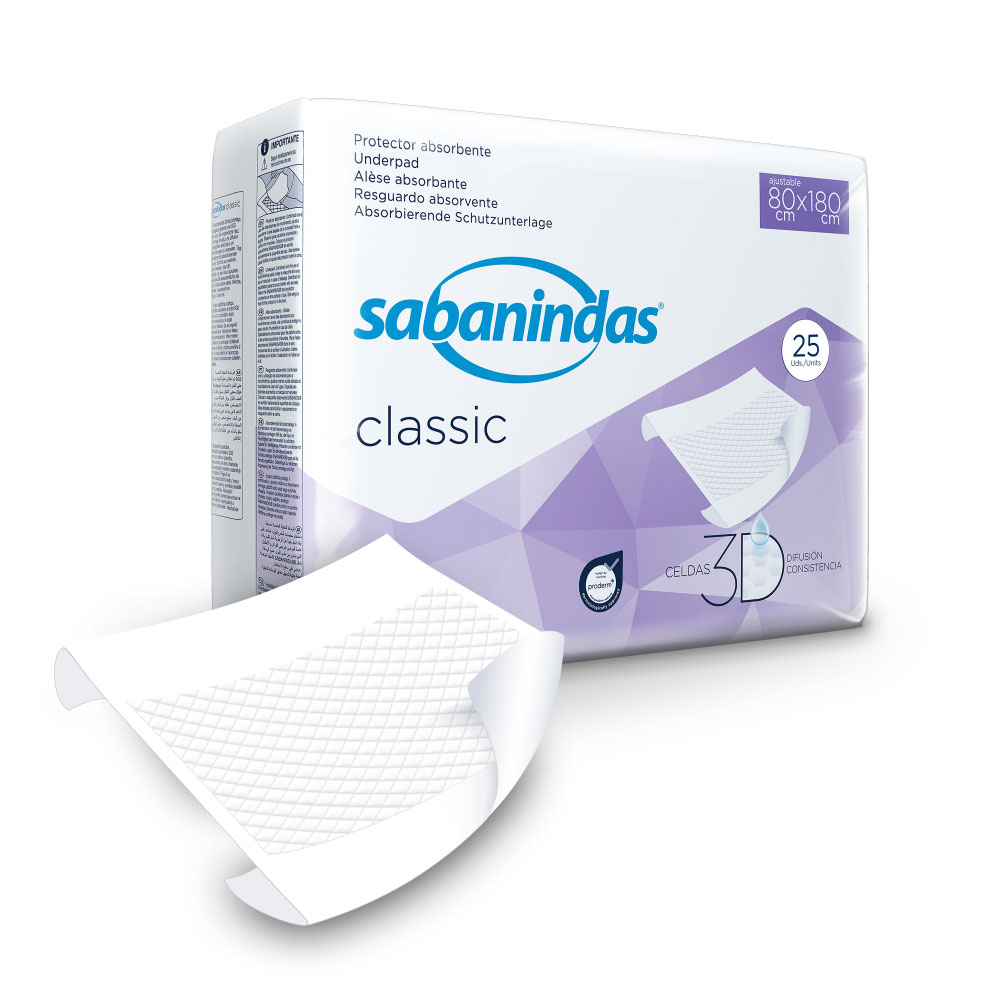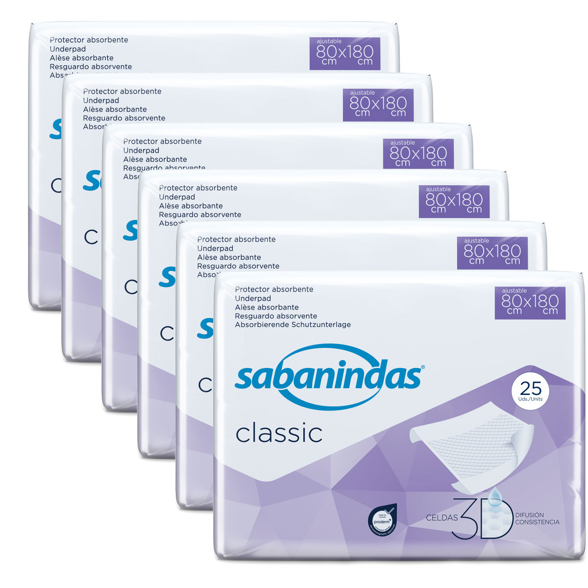 Produktinformationen "SABANINDAS - CLASSIC - Flocken Unterlagen - Seitenflügeln 80 x 180cm (6x25 Stück)"