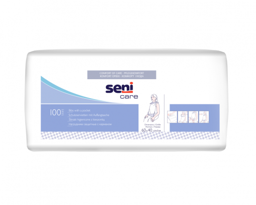 Die SENI Care Schutzservietten bestehen aus einem reißfesten, saugfähigen Zellstoffttissue und eine mit Polyethylen beschichtete Unterseite welche vor unschönen Flecken auf der Kleidung schützt.