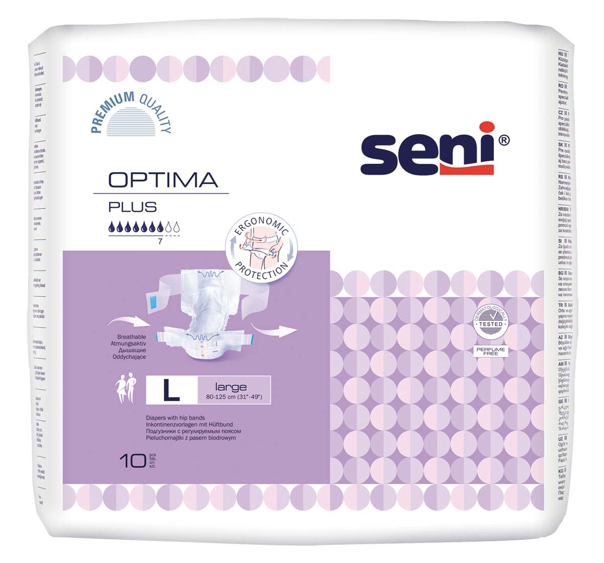 Die Seni Optima PLUS mit einer höheren Saugfähigkeit werden für den Schutz während des Tages empfohlen. Sie verbindet die Vorteile von anatomisch geformten Vorlagen und herkömmlichen Windelhosen. Somit erfüllen sie optimal die Anforderungen, die vor allem für Menschen mit mittlerer bis schwerer Inkontinenz sehr wichtig sind, um so einen Möglichkeit zu haben, aktiv am gesellschaftlichen Leben teilzunehmen.