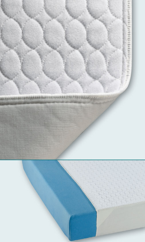 - Beschichtete Bettauflagen (Frottee oder Molton) mit saugender Funktion und erhöhtem Liegekomfort, die über das Bettlaken gelegt werden können