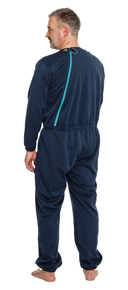 Der Suprima reißfeste Pflegeoverall "CarePlus" ist die perfekte Wahl für Schwerstpflegebedürftige, insbesondere für Patienten mit Demenz oder psychischen Erkrankungen. Diese Patienten haben oft einen starken Drang, sich selbst zu entkleiden oder ihre Kleidung zu zerreißen, was zu Unterkühlung und anderen Komplikationen führen kann. Der CarePlus Overall besteht aus einem zerreißfesten und atmungsaktiven Material, das besonders widerstandsfähig gegenüber autoaggressivem Verhalten ist. Die Nähte sind doppelt verstärkt, um ein Reißen oder Lösen zu verhindern. Der diagonal verlaufende Rückenreißverschluss ist so gestaltet, dass er keine Druckstellen am Rücken verursacht und den Zugang zum Oberkörper erleichtert.