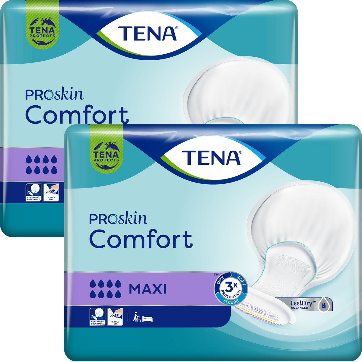 Die neue TENA Comfort Maxi mit ConfioAir™ nutzt atmungsaktive Materialien, die es der Haut ermöglichen zu atmen und die Hautgesundheit aufrecht zu erhalten sowie Hautirritationen zu verhindern. Die neue vollständig atmungsaktive und textilartige Rückseite bewahrt die Trockenheit für mehr Komfort und gesunde Haut und fühlt sich weicher und komfortabler an. Die einzigartige Schalenform bietet Auslaufschutz und körpernahen Sitz.