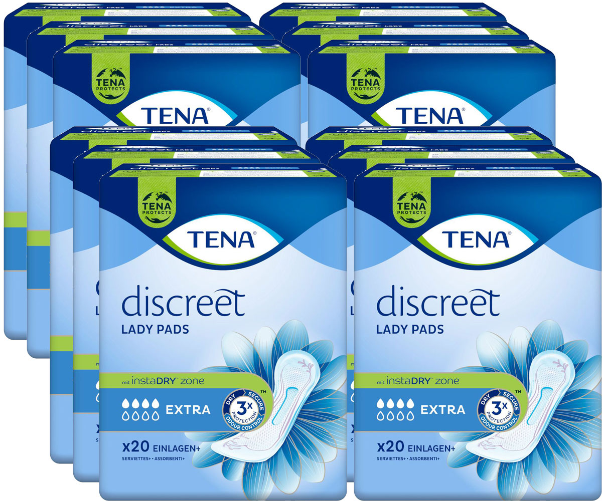 - Beschreibung TENA Lady Discreet Extra - 240 Stück Vorteilspack Ein Plus an Sicherheit bei mittlerer Blasenschwäche: Das bieten Ihnen di… Mehr