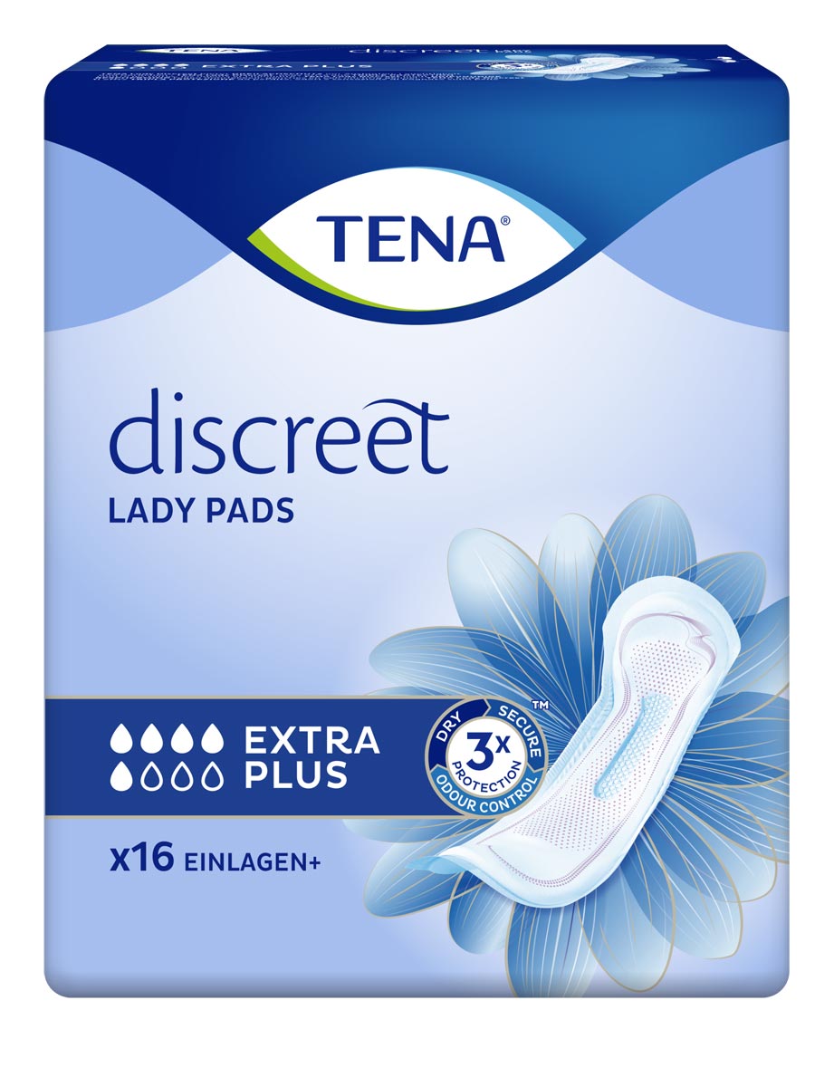 Ein Plus an Sicherheit bei mittlerer Blasenschwäche: Das bieten Ihnen die besonders saugfähigen Einlagen+ von TENA Lady: TENA Lady Extra, Extra Plus, Maxi, Maxi Night. Dank brandneuer InstaDRY Technologie nehmen TENA Lady Extra Plus und Maxi auch größere Mengen Flüssigkeit schneller auf als je zuvor. Darüber hinaus bieten alle Produkte einen besonderen Tragekomfort durch das atmungsaktive Material und die seidenweiche Silky Softness Oberfläche, welche für ein besonders angenehmes Gefühl auf der Haut sorgt.
