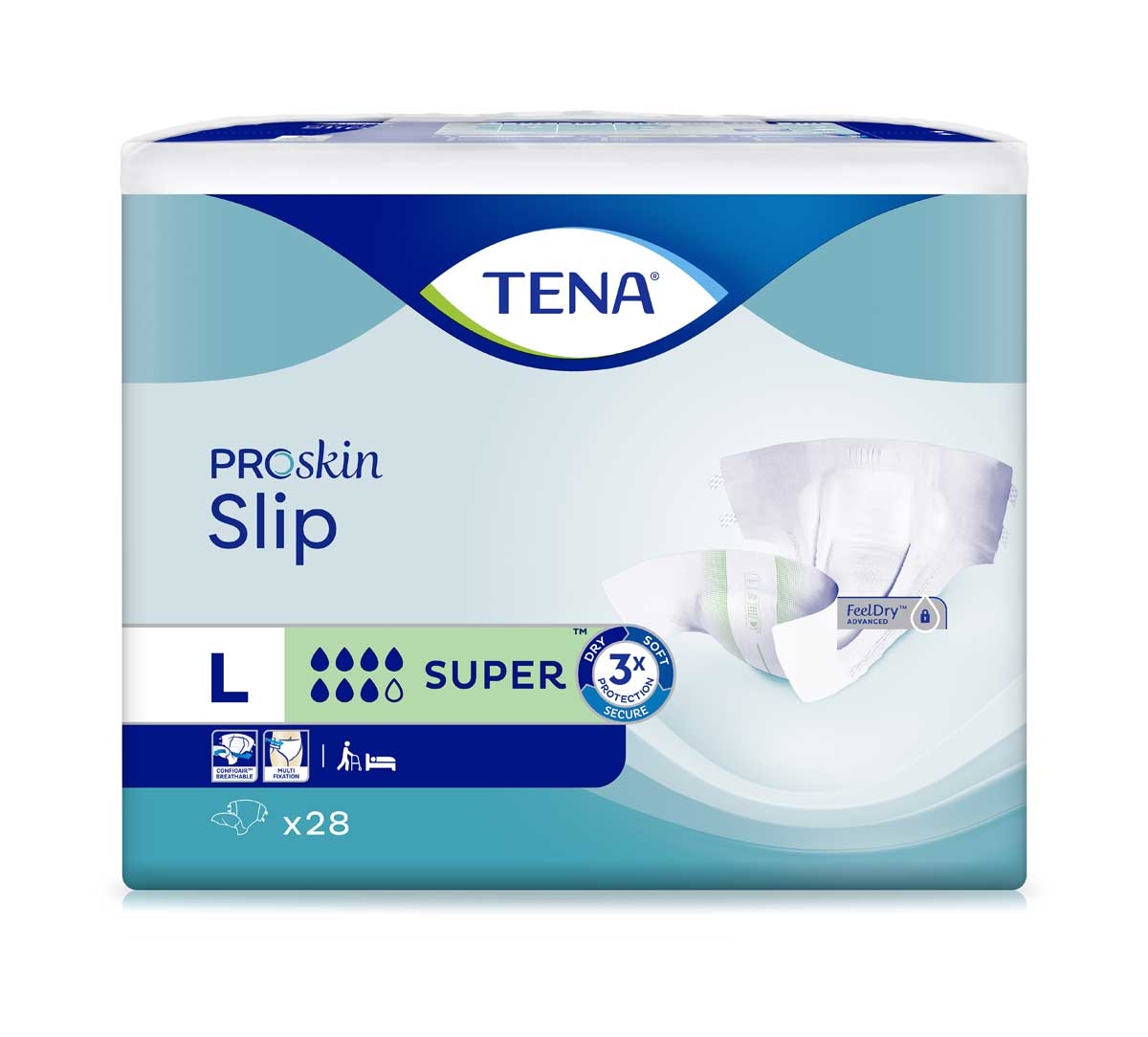Tena Slip Super bieten einen ausgezeichneten Schutz bei Urininkontinenz und Stuhlinkontinenz. Der einzigartige Superfit-Verschluss ermöglicht mehrmaliges öffnen für einen stets perfekten Sitz der Windel. Flüssigkeit wird schnell in den doppelten Saugkern geleitet und dort auslaufsicher gebunden. Die FeelDry-Oberfläche sorgt für ein trockenes Gefühl auf der Haut.